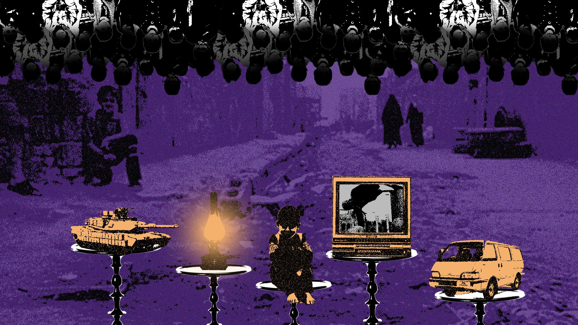 ما هي إلا أيام حتى بدأنا نتجمع أمام شاشة التلفاز، كانت قناة العالم تبث الأخبار بشكل مستمر، ولا أعرف كيف حصلنا وقتها على بثها. المنزل الذي جلسنا فيه كان يعود لعائلة يعمل والدهم مع نظام صدام ويقال إنه “بعثي كبير”، فكان علينا دائما أن نثبت أننا مع النظام، حتى أن عمتي بقيت تبكي بشكل درامي ومفتعل على سقوط صدام، فالخوف من النظام لم ينته بعد.