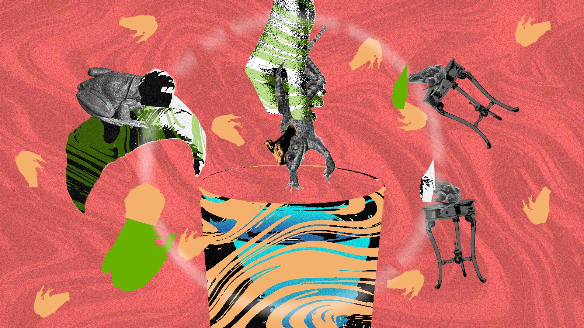 لأن هؤلاء، قد دخلوا الحفلة مبكّرين، بضفادع غير مدرّبة. ضفادع تمجّد الرب وتقرأ الصلوات، لها باع طويل في مصارعة الحريات ومناهضة الحياة، بينما نحن فينطبق علينا غناء نجاة الصغيرة وهي تعاتب حبيبها الخبير في الغرام وهي المبتدئة المستجدة “خذني بكل بساطتي وطفولتي، أنا لم أزل أحبو وأنت قدير”.