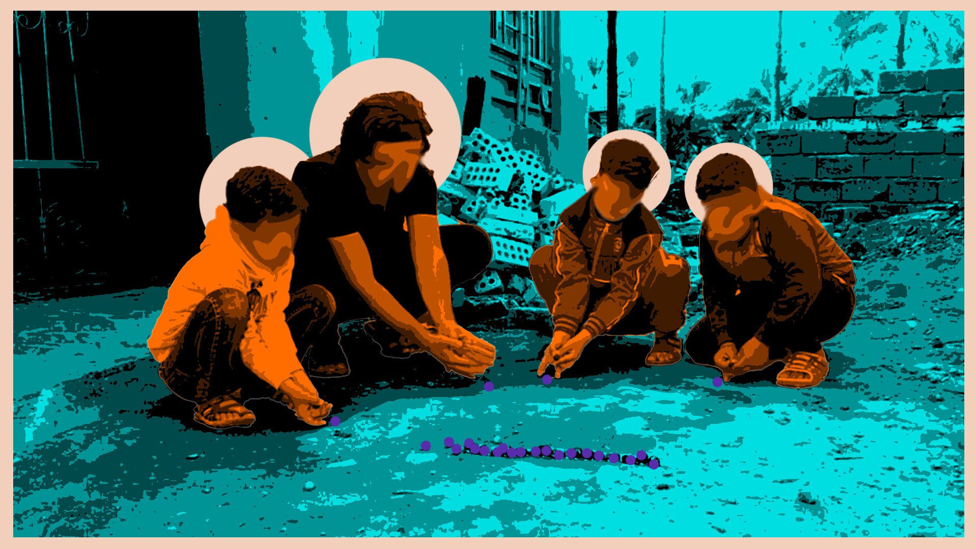 في كل قطاع من مدينة الثورة أربع ساحات في الغالب، وقبل أن نصبح قادرين على دحرجة الكرة، نأخذ أطراف تلك الساحة، في الأطراف لعبتنا المفضلة حيث نجلب ماء من المنزل لنرطب الأرض وحفر أنفاقاً، نبني المدن الوهمية، نرسم الأشكال، نبني البيوت التي سرعان ما تُزال عندما ينطلق الشبان الأكبر سناً في الكرة.